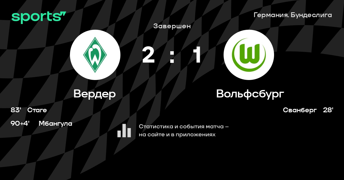 Бундеслига: шансы Вердер – Вольфсбург победу в матче 10-го тура чемпионата Германии