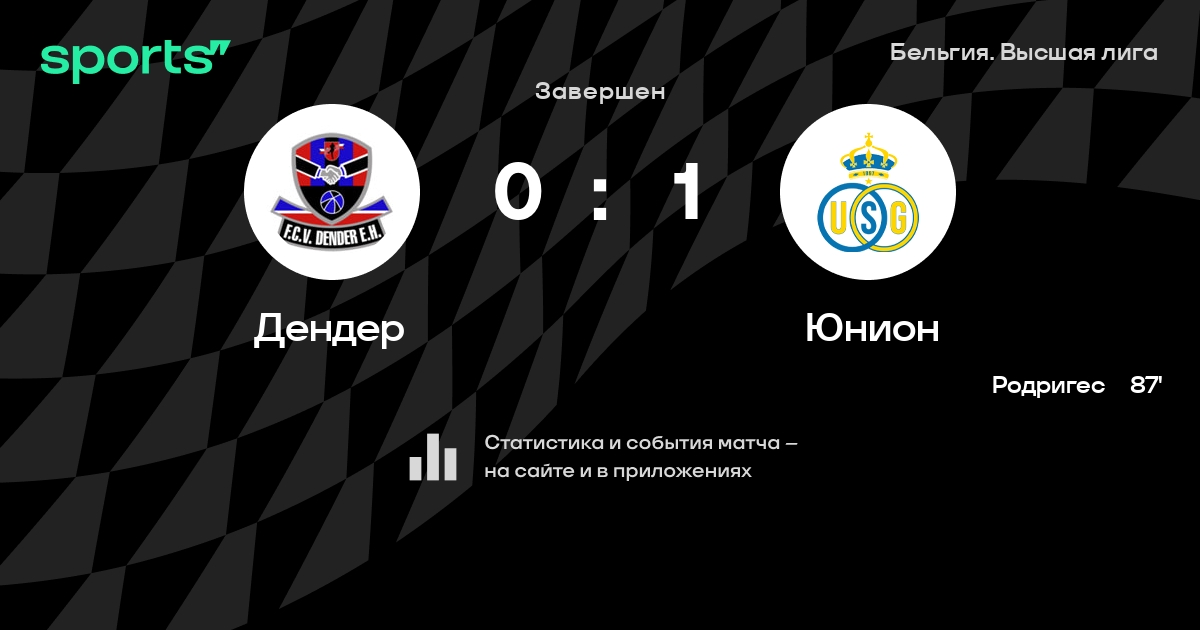 Результат прошлой игры в турнире «Высшая лига»: Шарлеруа – Дендер 3:1. После 6 туров Дендер набирает 2 очков и занимает 16 место в турнире. Лучший бомбардир команды – Роман Квет: он забил 1 в 6 матчах. Дендер проигрывает в 4 последних матчах в рамках турнира «Высшая лига». Юнион имеет в активе больше всех побед в турнире – 4. Дендер пропускает в 5 последних матчах в турнире «Высшая лига». В последних 5 играх Дендер забивает 2 голов. В последних 5 играх Дендер пропускает 9 голов.