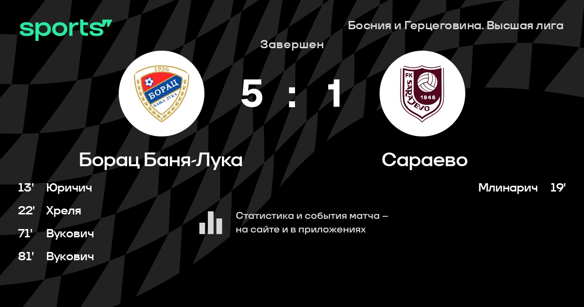 Борац Баня-Лука – Сараево: Борац Баня-Лука не проигрывает в 6 из 8 последних матчей против этого соперника в турнире «Высшая лига»