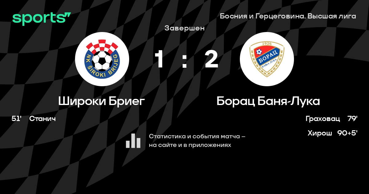Широки Бриег – Борац Баня-Лука: Борац Баня-Лука забивает в 11 последних матчах против этого соперника