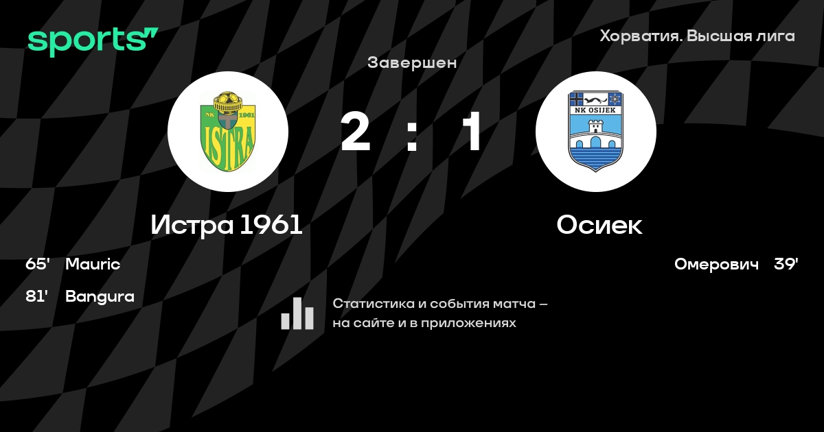 Истра 1961 – Осиек: Истра 1961 не проигрывает в 6 последних матчах против этого соперника
