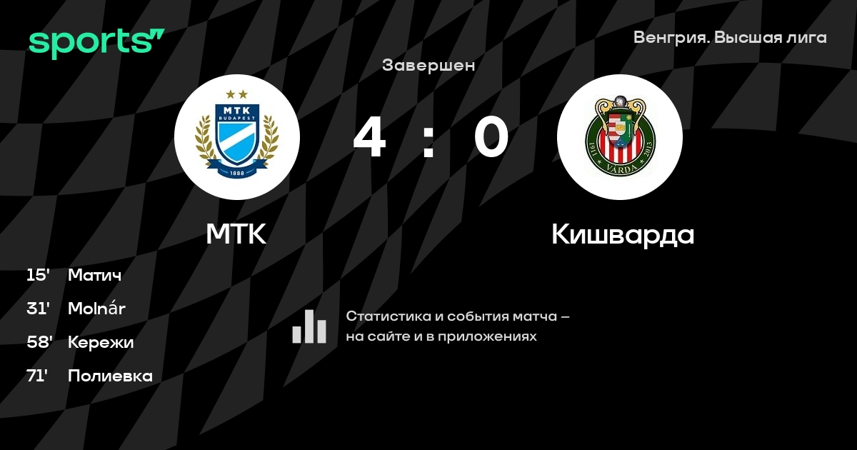 МТК – Кишварда: Кишварда забивает в 3 последних матчах против этого соперника