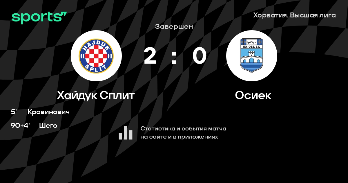 Хайдук Сплит – Осиек: коэффициенты