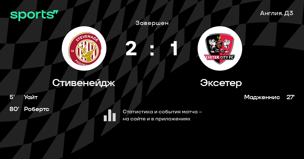 Результат прошлой игры в турнире «Лига 1»: Мэнсфилд – Стивенейдж 1:1. После 7 туров Стивенейдж набирает 16 очков и занимает 4 место в турнире. Лучший бомбардир команды – Джейми Рид: он забил 5 в 8 матчах. В последних 5 играх Стивенейдж забивает 9 голов. В последних 5 играх Стивенейдж пропускает 4 голов.