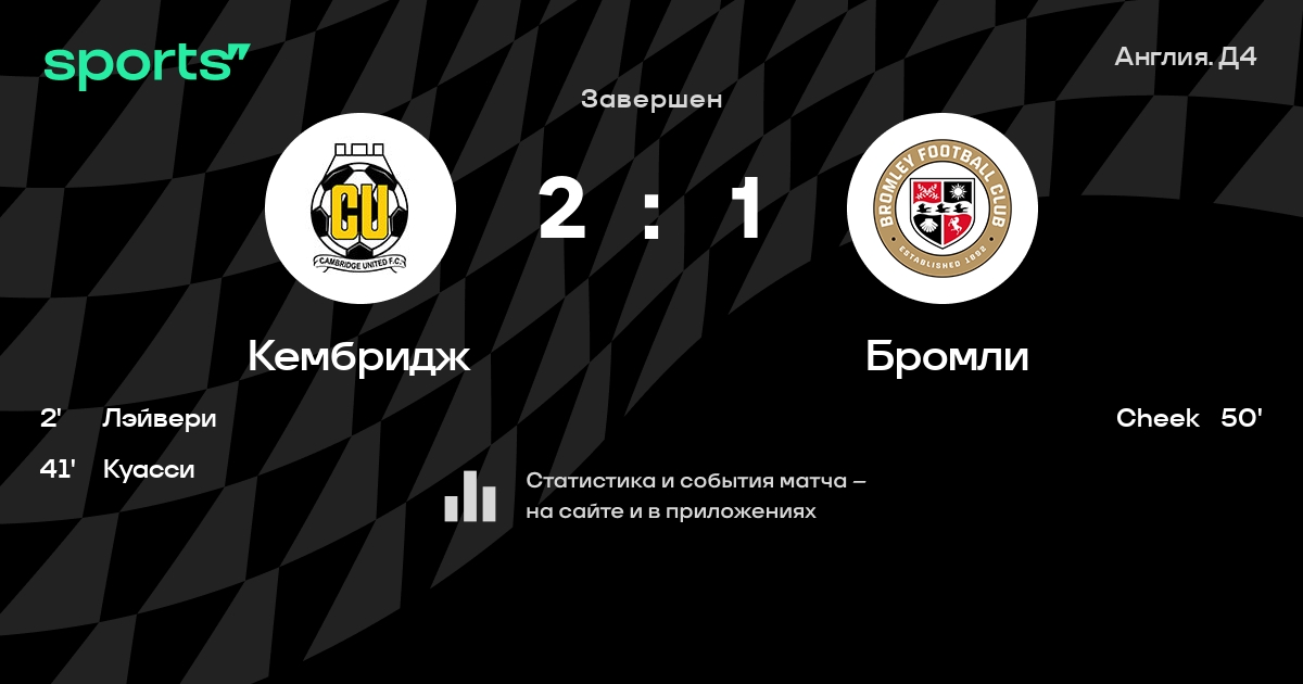 В последних 5 играх Кембридж забивает в среднем 1.20 гола за игру