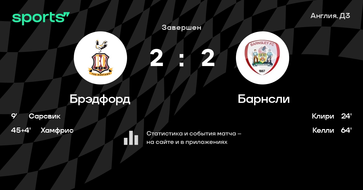 Брэдфорд – Барнсли: Барнсли не проигрывает в 6 из 8 последних матчей против этого соперника