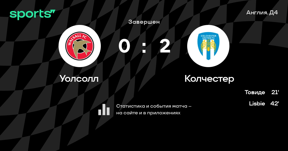 Уолсолл – Колчестер: Уолсолл не проигрывает в 7 из 9 последних матчей против этого соперника