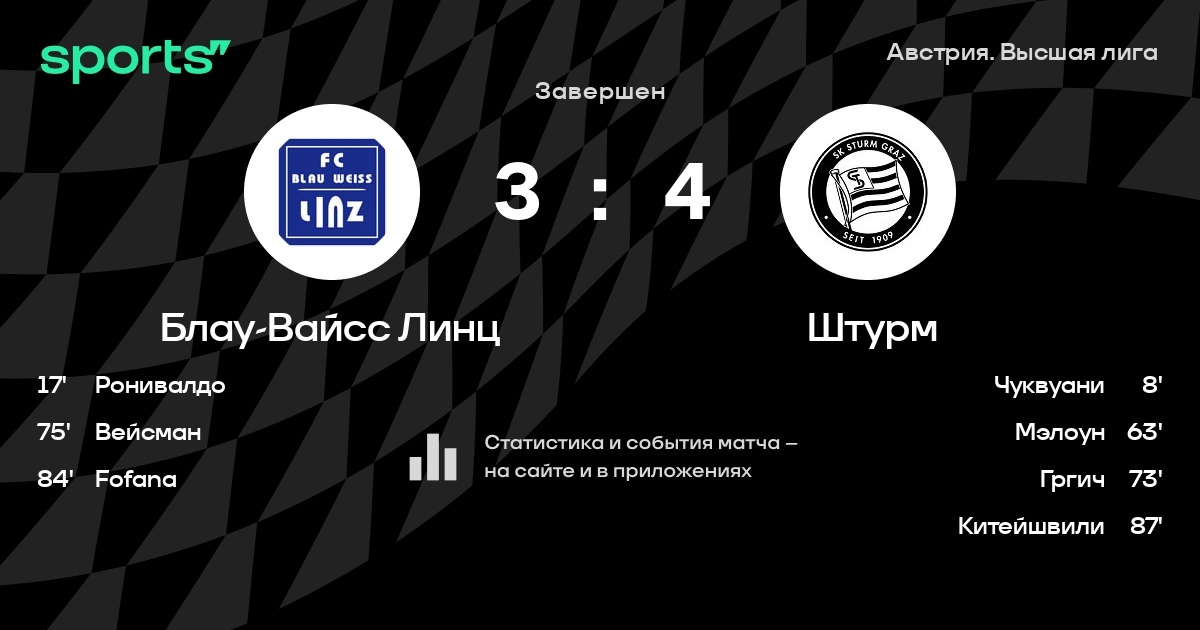 Блау-Вайсс Линц – Штурм: Штурм побеждает в 5 последних очных матчах
