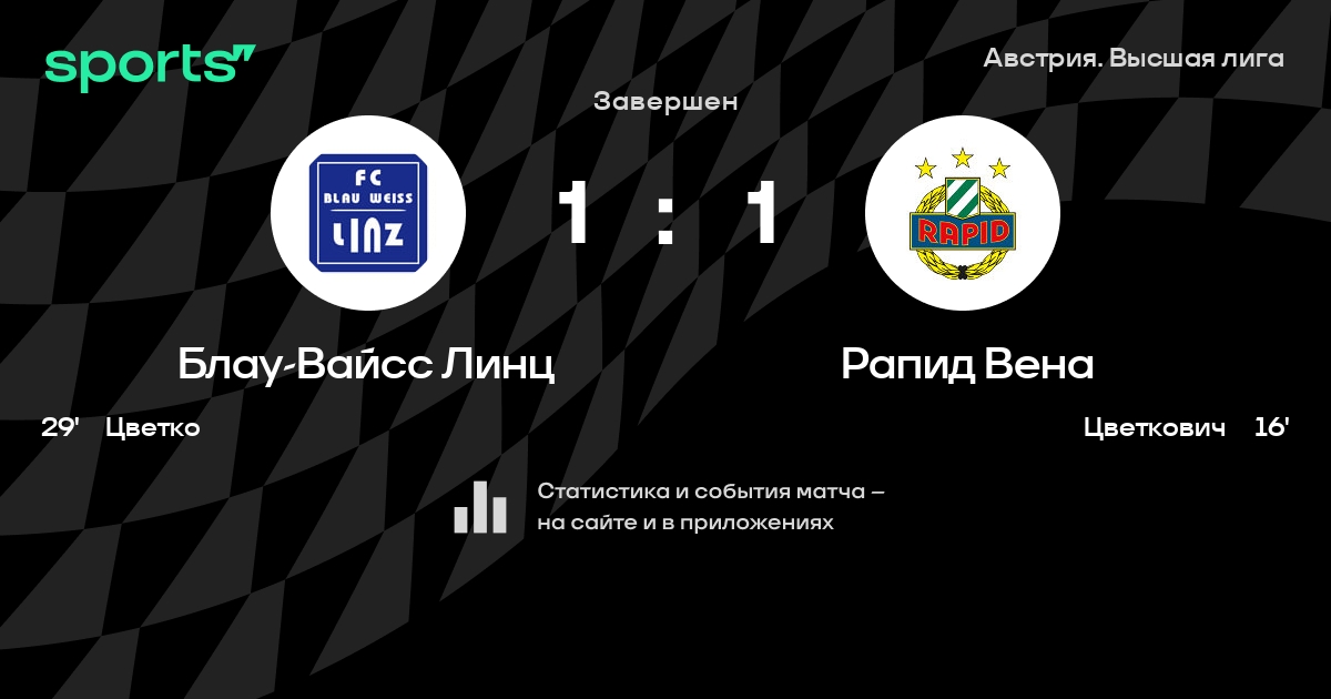 Результат прошлой игры в турнире «Бундеслига»: Блау-Вайсс Линц – Ред Булл 0:2. После 16 туров Блау-Вайсс Линц набирает 10 очков и занимает 12 место в турнире. Лучший бомбардир команды – S. Seidl: он забил 5 в 16 матчах. Блау-Вайсс Линц проигрывает в 7 последних матчах в рамках турнира «Бундеслига». Блау-Вайсс Линц пропускает в 7 последних матчах в турнире «Бундеслига». В последних 5 играх Блау-Вайсс Линц забивает 4 голов. В последних 5 играх Блау-Вайсс Линц пропускает 11 голов.