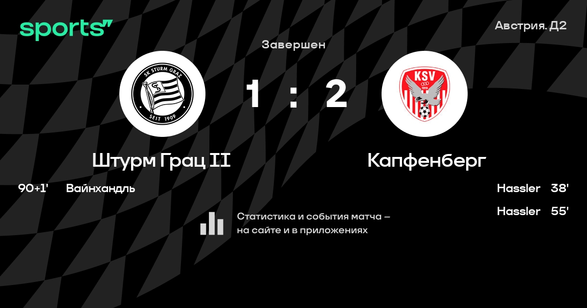 Результат прошлой игры в турнире «Вторая бундеслига»: Лиферинг – Штурм Грац II 2:2. После 3 туров Штурм Грац II набирает 2 очков и занимает 13 место в турнире. Лучший бомбардир команды – T. Scharmer: он забил 2 в 3 матчах. Штурм Грац II не может выиграть в 3 последних матчах в рамках турнира «Вторая бундеслига». Штурм Грац II пропускает в 12 последних матчах в турнире «Вторая бундеслига». В последних 5 играх Штурм Грац II забивает 20 голов. В последних 5 играх Штурм Грац II пропускает 13 голов.