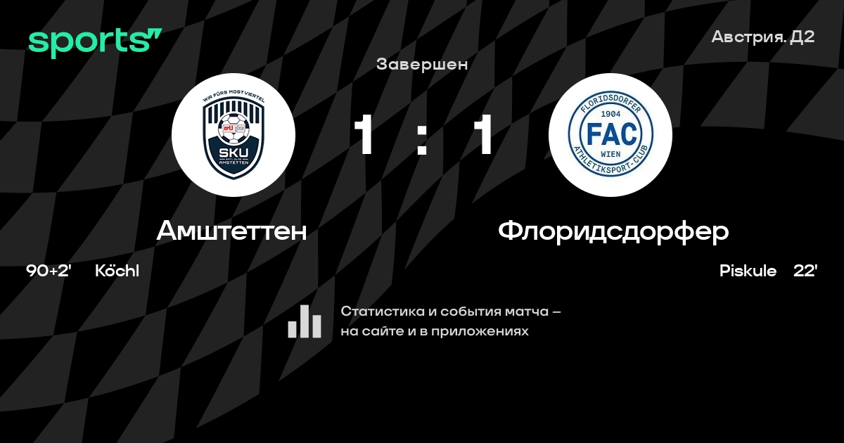 Результат прошлой игры в турнире «Вторая бундеслига»: Брегенц – Амштеттен 0:2. После 10 туров Амштеттен набирает 17 очков и занимает 5 место в турнире. Лучший бомбардир команды – Давид Пехам: он забил 8 в 12 матчах. Амштеттен не проигрывает в 7 последних матчах в рамках турнира «Вторая бундеслига». В последних 5 играх Амштеттен забивает 10 голов. В последних 5 играх Амштеттен пропускает 3 голов.