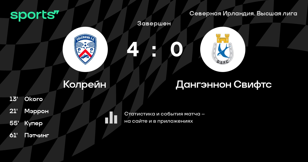 Колрейн – Дангэннон Свифтс: Колрейн забивает в 18 последних матчах против этого соперника