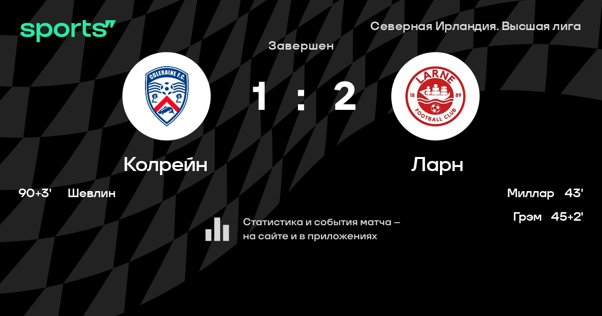 Результат прошлой игры в турнире «Премьер-лига»: Клифтонвилл – Колрейн 1:0. После 16 туров Колрейн набирает 33 очков и занимает 1 место в турнире. Лучший бомбардир команды – Джоэл Купер: он забил 10 в 16 матчах. Колрейн имеет в активе больше всех побед в турнире – 10. Колрейн имеет лучшую разницу мячей в турнире – 21. Колрейн пропускает в 4 последних матчах в турнире «Премьер-лига». Колрейн больше всех забивает в турнире – 34 в 16. В последних 5 играх Колрейн забивает 15 голов. В последних 5 играх Колрейн пропускает 6 голов.