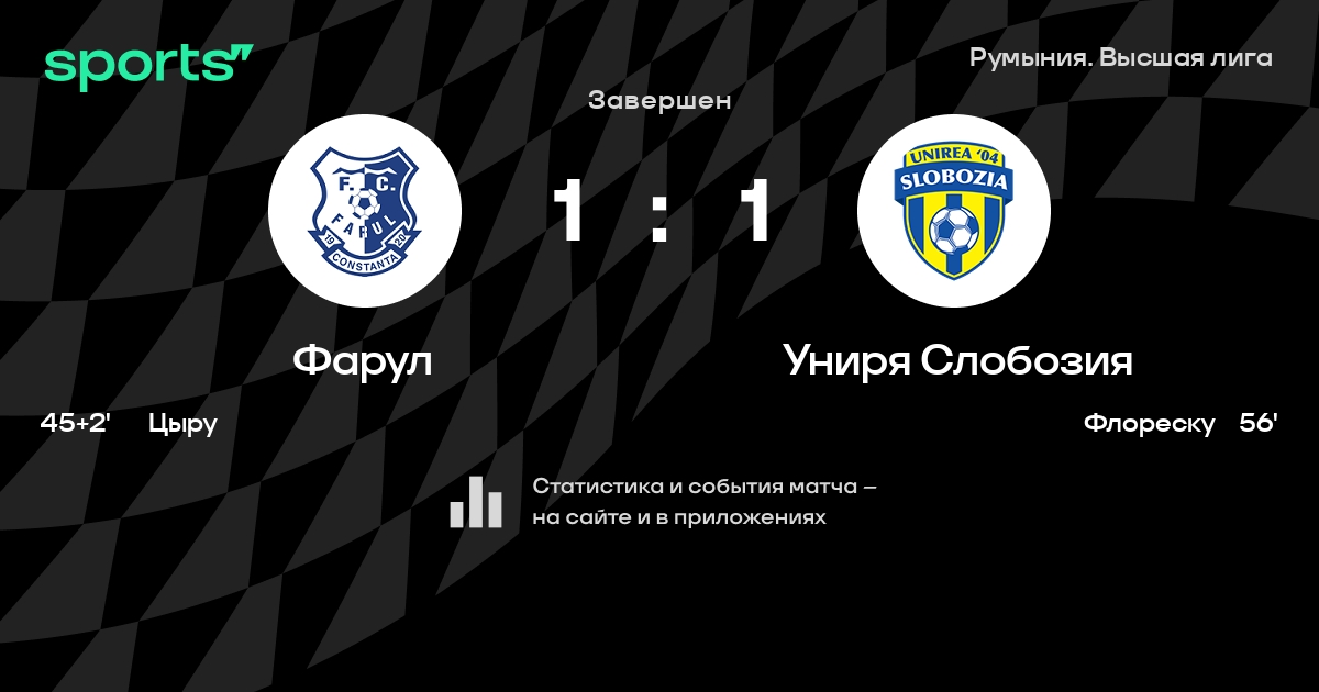 Результат прошлой игры в турнире «Лига 1»: Динамо Бухарест – Фарул 1:1. После 10 туров Фарул набирает 14 очков и занимает 8 место в турнире. Лучший бомбардир команды – R. Tanasa: он забил 5 в 11 матчах. Фарул пропускает в 10 последних матчах в турнире «Лига 1». В последних 5 играх Фарул забивает 5 голов. В последних 5 играх Фарул пропускает 5 голов.