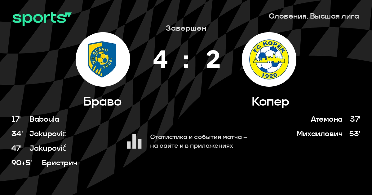 Браво – Копер: Копер побеждает в 3 последних очных матчах