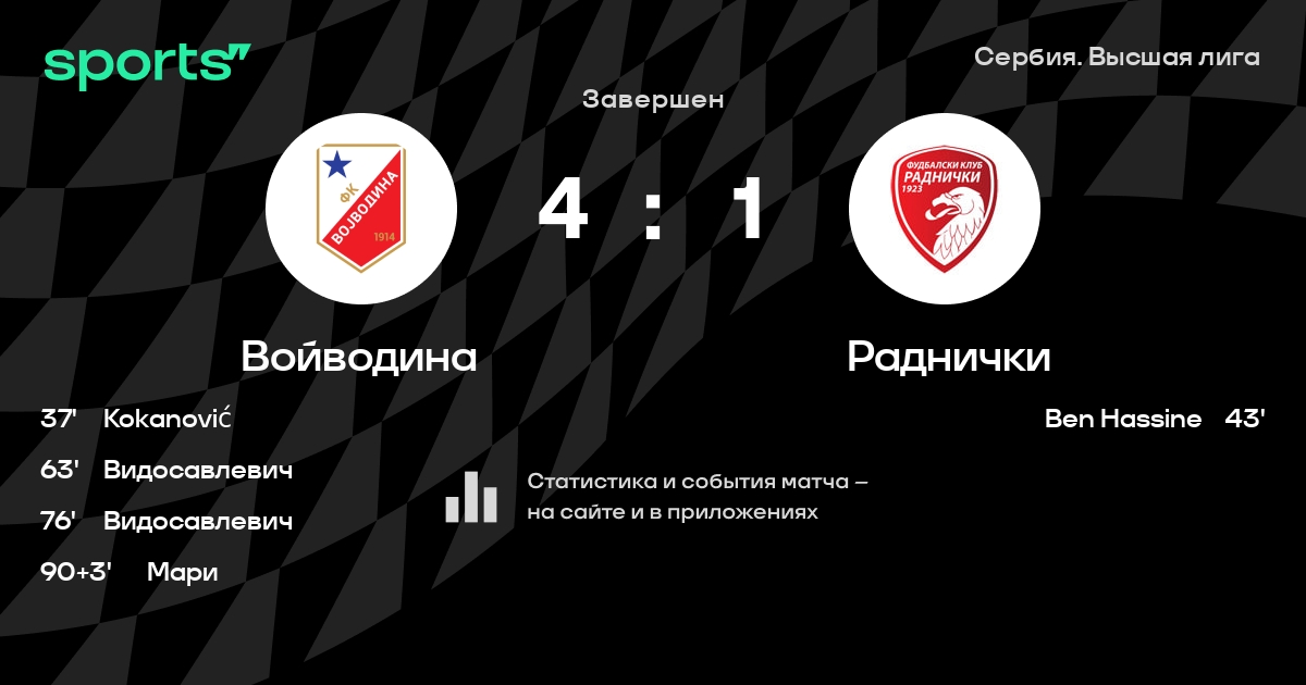Войводина – Раднички: Войводина не проигрывает в 5 последних матчах против этого соперника