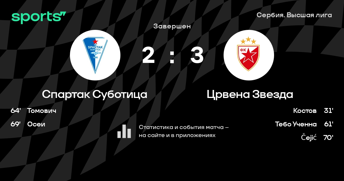 Спартак Суботица – Црвена Звезда: Црвена Звезда побеждает в 19 последних очных матчах