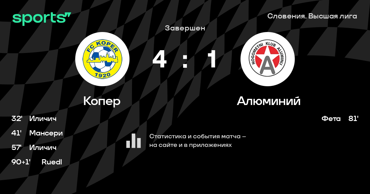 Копер – Алюминий: Копер побеждает в 3 последних очных матчах дома