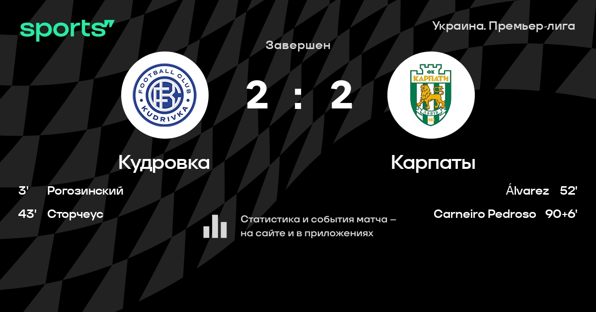 Результат прошлой игры в турнире «Премьер-лига»: Кудровка – СК Полтава 3:1. После 3 туров Кудровка набирает 6 очков и занимает 6 место в турнире. Лучший бомбардир команды – Владислав Шаповал: он забил 2 в 3 матчах. В 3 последних матчах в турнире «Премьер-лига» Кудровка обязательно забивает. Кудровка пропускает в 3 последних матчах в турнире «Премьер-лига». В последних 5 играх Кудровка забивает 8 голов. В последних 5 играх Кудровка пропускает 6 голов.