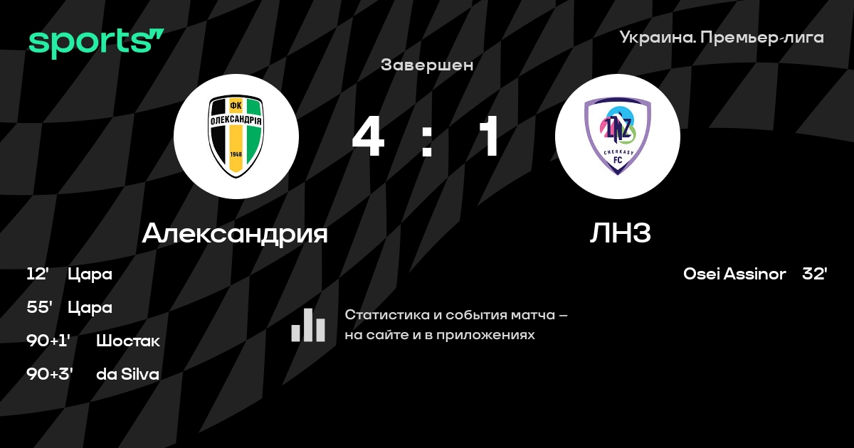 Результат прошлой игры в турнире «Премьер-лига»: Шахтер – Александрия 2:0. После 4 туров Александрия набирает 0 очков и занимает 16 место в турнире. Лучший бомбардир команды – Jota Pereira: он забил 1 в 5 матчах. Александрия проигрывает в 4 последних матчах в рамках турнира «Премьер-лига». Александрия пропускает в 4 последних матчах в турнире «Премьер-лига». В последних 5 играх Александрия забивает 2 голов. В последних 5 играх Александрия пропускает 14 голов.