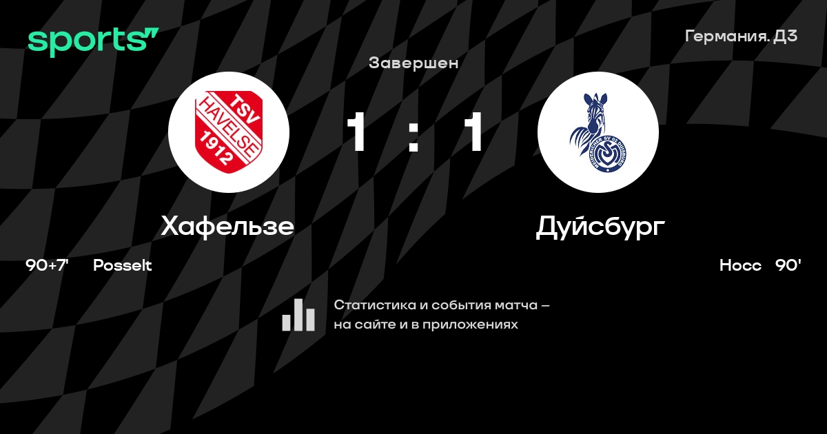 Результат прошлой игры в турнире «Третья лига»: Хафельзе – Ингольштадт 2:6. После 6 туров Хафельзе набирает 2 очков и занимает 20 место в турнире. Лучший бомбардир команды – J. Posselt: он забил 2 в 6 матчах. Хафельзе проигрывает в 4 последних матчах в рамках турнира «Третья лига». Дуйсбург имеет в активе больше всех побед в турнире – 6. Хафельзе пропускает в 5 последних матчах в турнире «Третья лига». В последних 5 играх Хафельзе забивает 6 голов. В последних 5 играх Хафельзе пропускает 14 голов.