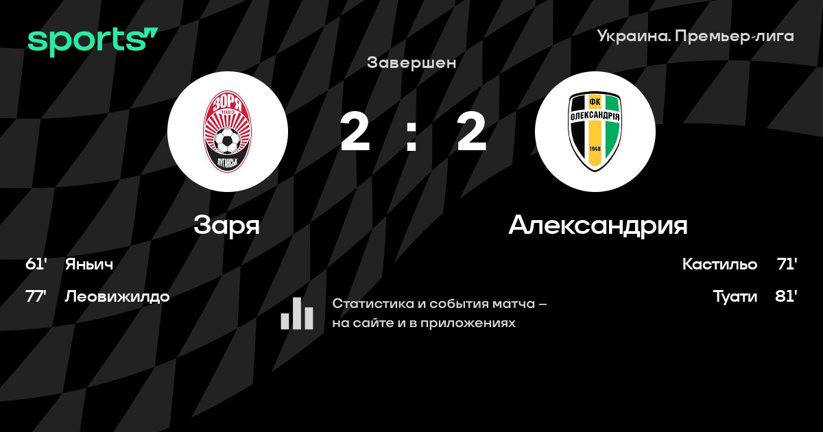 Заря – Александрия: коэффициенты