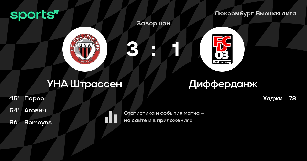 УНА Штрассен – Дифферданж: УНА Штрассен забивает в 3 последних матчах против этого соперника