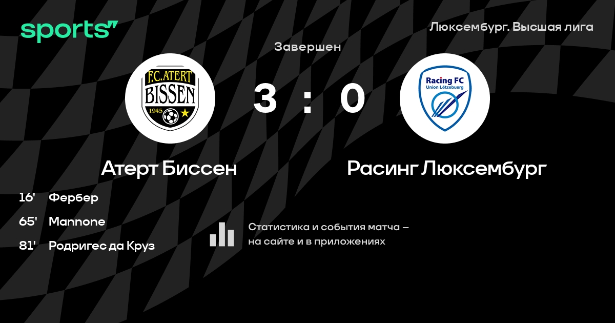 Результат прошлой игры в турнире «Высшая лига»: Мамер – Атерт Биссен 1:4. После 12 туров Атерт Биссен набирает 23 очков и занимает 4 место в турнире. Лучший бомбардир команды – K. Abi: он забил 8 в 11 матчах. Атерт Биссен побеждает в 3 последних матчах в рамках турнира «Высшая лига». В 8 последних матчах в турнире «Высшая лига» Атерт Биссен обязательно забивает. В последних 5 играх Атерт Биссен забивает 17 голов. В последних 5 играх Атерт Биссен пропускает 4 голов.