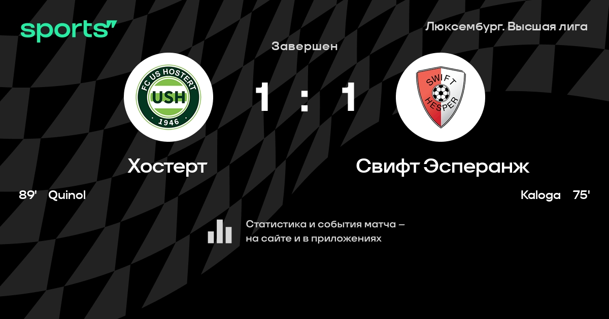 Результат прошлой игры в турнире «Высшая лига»: Хостерт – Мондорф-ле-Бен 2:1. После 12 туров Хостерт набирает 12 очков и занимает 12 место в турнире. Лучший бомбардир команды – D. Fernandes Lopes: он забил 6 в 12 матчах. В 6 последних матчах в турнире «Высшая лига» Хостерт обязательно забивает. Хостерт пропускает в 9 последних матчах в турнире «Высшая лига». В последних 5 играх Хостерт забивает 9 голов. В последних 5 играх Хостерт пропускает 11 голов.