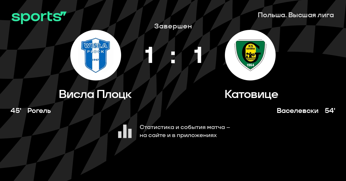 Результат прошлой игры в турнире «Высшая лига»: Висла Плоцк – Ягеллония 0:1. После 8 туров Висла Плоцк набирает 16 очков и занимает 4 место в турнире. Лучший бомбардир команды – Лукаш Секульски: он забил 4 в 7 матчах. Висла Плоцк пропускает в 3 последних матчах в турнире «Высшая лига». В последних 5 играх Висла Плоцк забивает 5 голов. В последних 5 играх Висла Плоцк пропускает 7 голов.