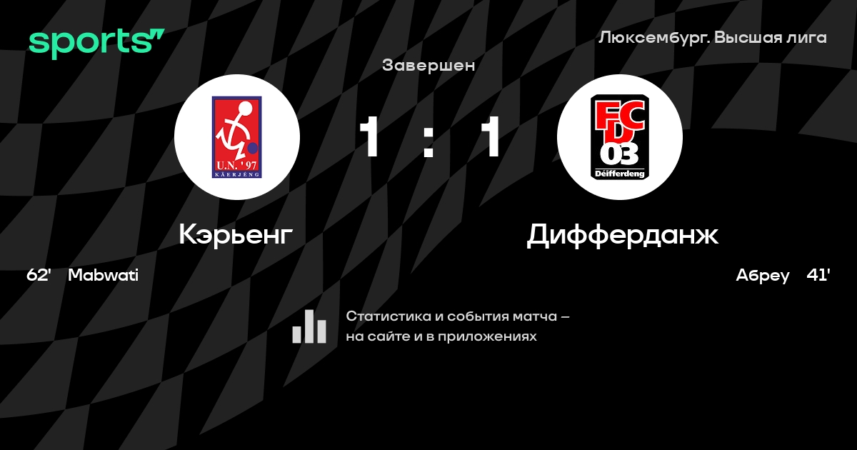 Результат прошлой игры в турнире «Высшая лига»: Кэрьенг – Роданж 91 3:1. После 14 туров Кэрьенг набирает 15 очков и занимает 11 место в турнире. Лучший бомбардир команды – Идир Бутриф: он забил 5 в 12 матчах. Кэрьенг не проигрывает в 4 последних матчах в рамках турнира «Высшая лига». Дифферданж имеет в активе больше всех побед в турнире – 10. В 4 последних матчах в турнире «Высшая лига» Кэрьенг обязательно забивает. Кэрьенг пропускает в 8 последних матчах в турнире «Высшая лига». В последних 5 играх Кэрьенг забивает 11 голов. В последних 5 играх Кэрьенг пропускает 7 голов.