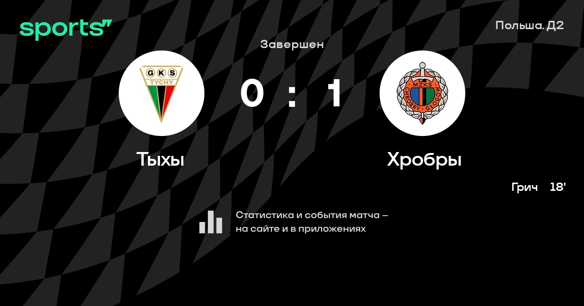 Результат прошлой игры в турнире «Первая лига»: Тыхы – Вечиста 3:3. После 13 туров Тыхы набирает 12 очков и занимает 15 место в турнире. Лучший бомбардир команды – M. Błachewicz: он забил 3 в 10 матчах. Тыхы не может выиграть в 7 последних матчах в рамках турнира «Первая лига». В 3 последних матчах в турнире «Первая лига» Тыхы обязательно забивает. Тыхы пропускает в 9 последних матчах в турнире «Первая лига». В последних 5 играх Тыхы забивает 5 голов. В последних 5 играх Тыхы пропускает 15 голов.