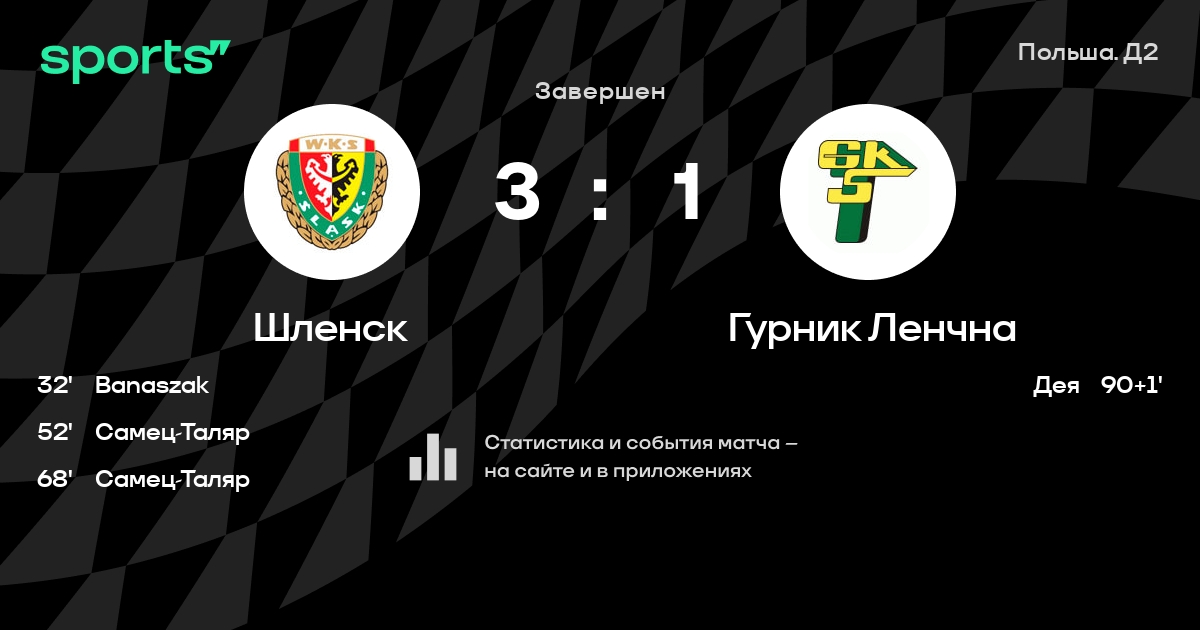 Результат прошлой игры в турнире «Первая лига»: Шленск – Сталь Мелец 2:1. После 13 туров Шленск набирает 24 очков и занимает 2 место в турнире. Лучший бомбардир команды – Дамян Вархол: он забил 5 в 11 матчах. В 6 последних матчах в турнире «Первая лига» Шленск обязательно забивает. Шленск пропускает в 4 последних матчах в турнире «Первая лига». В последних 5 играх Шленск забивает 9 голов. В последних 5 играх Шленск пропускает 7 голов.