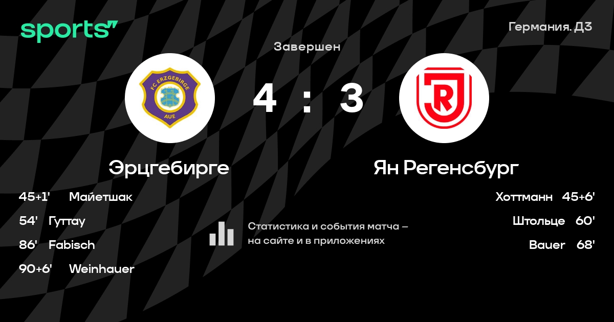 Результат прошлой игры в турнире «Третья лига»: Хоффенхайм-2 – Эрцгебирге 1:1. После 12 туров Эрцгебирге набирает 12 очков и занимает 18 место в турнире. Лучший бомбардир команды – Юлиан Гуттау: он забил 3 в 9 матчах. Эрцгебирге не может выиграть в 3 последних матчах в рамках турнира «Третья лига». Эрцгебирге пропускает в 3 последних матчах в турнире «Третья лига». В последних 5 играх Эрцгебирге забивает 6 голов. В последних 5 играх Эрцгебирге пропускает 5 голов.