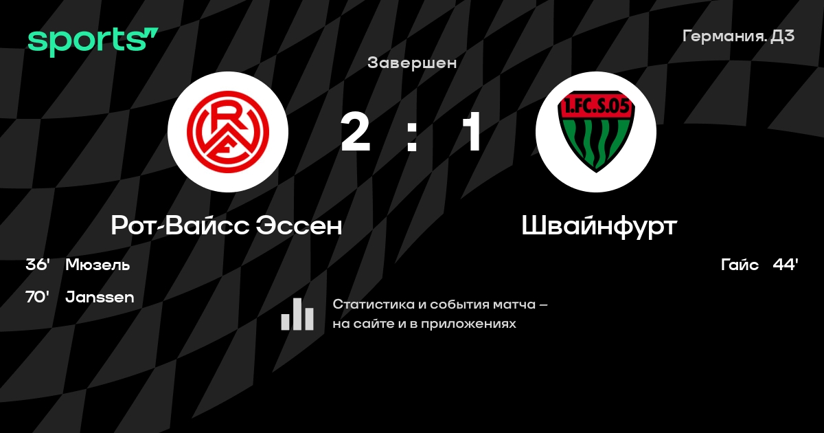 Результат прошлой игры в турнире «Третья лига»: Дуйсбург – Рот-Вайсс Эссен 1:1. После 12 туров Рот-Вайсс Эссен набирает 20 очков и занимает 7 место в турнире. Лучший бомбардир команды – Каито Мидзута: он забил 4 в 13 матчах. Рот-Вайсс Эссен не проигрывает в 4 последних матчах в рамках турнира «Третья лига». В 15 последних матчах в турнире «Третья лига» Рот-Вайсс Эссен обязательно забивает. В последних 5 играх Рот-Вайсс Эссен забивает 8 голов. В последних 5 играх Рот-Вайсс Эссен пропускает 10 голов.