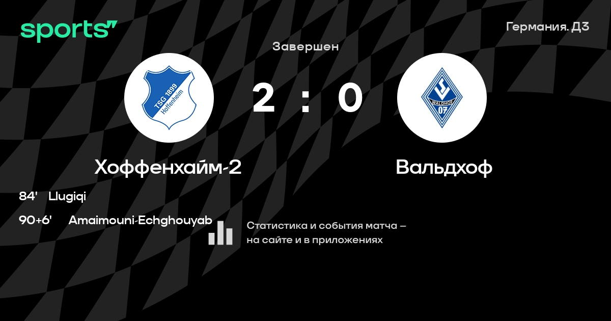 Хоффенхайм-2 – Вальдхоф: Вальдхоф забивает в 16 последних матчах против этого соперника