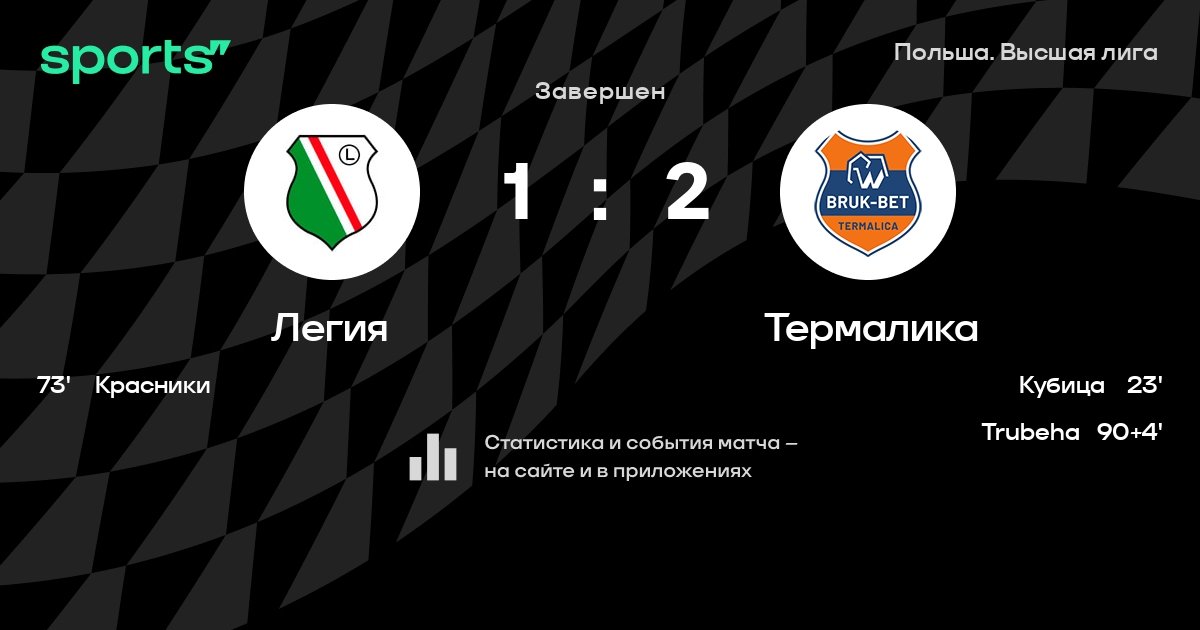 Легия – Термалика: Легия не проигрывает в 6 из 8 последних матчей против этого соперника