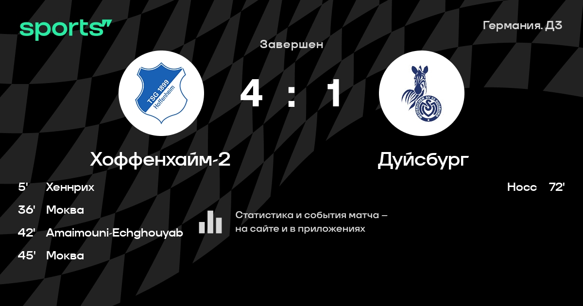 Трансляция Хоффенхайм-2 - Дуйсбург