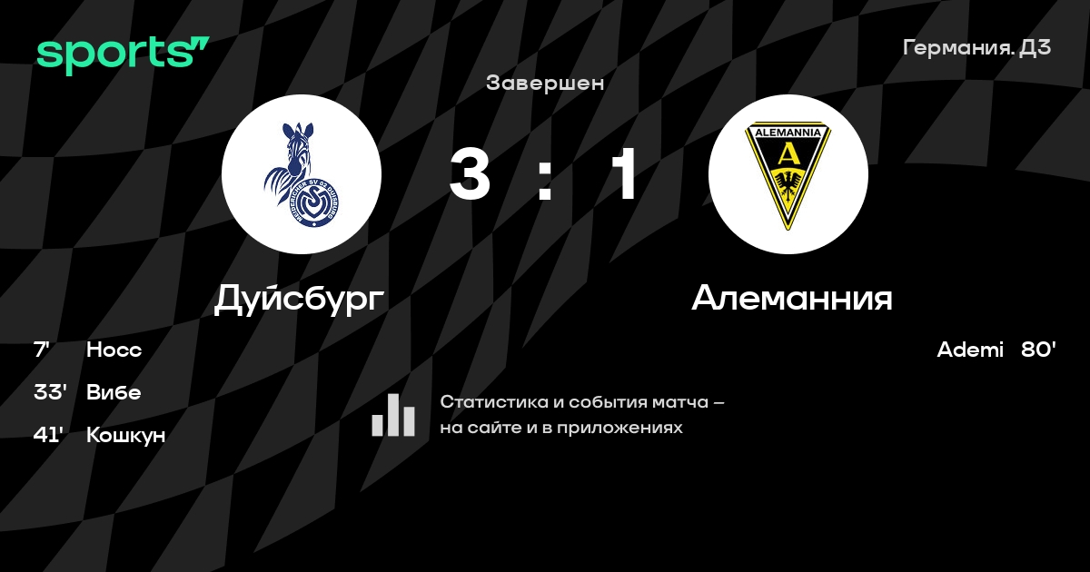 Дуйсбург – Алеманния: коэффициенты