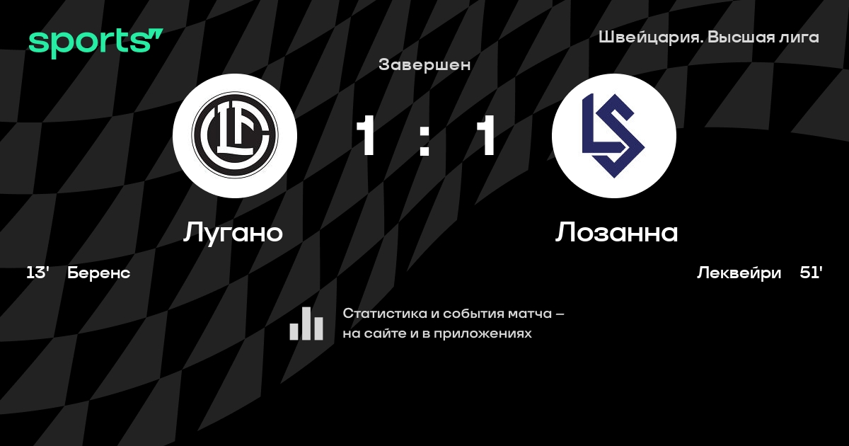 Результат прошлой игры в турнире «Суперлига»: Санкт-Галлен – Лугано 1:0. После 5 туров Лугано набирает 3 очков и занимает 10 место в турнире. Лучший бомбардир команды – Анто Гргич: он забил 3 в 10 матчах. Лугано пропускает в 9 последних матчах в турнире «Суперлига». В последних 5 играх Лугано забивает 10 голов. В последних 5 играх Лугано пропускает 10 голов.