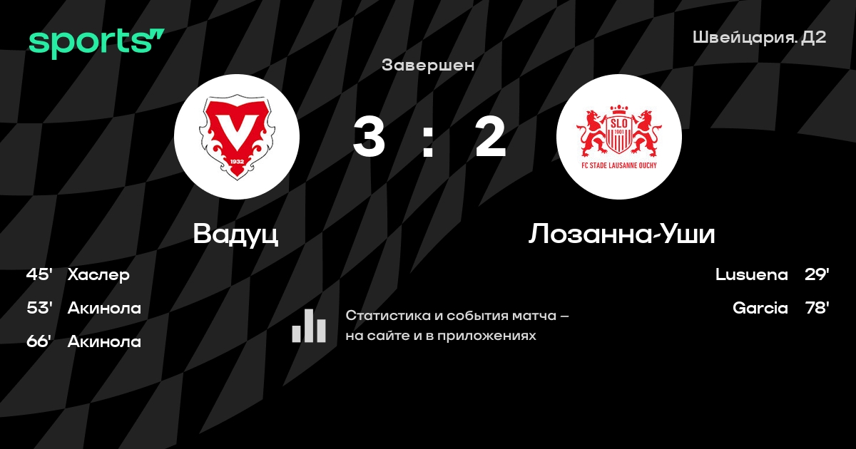 Результат прошлой игры в турнире «Челлендж-лига»: Ивердон Спорт – Вадуц 3:4. После 12 туров Вадуц набирает 27 очков и занимает 2 место в турнире. Лучший бомбардир команды – R. Dantas Fernandes: он забил 6 в 16 матчах. Вадуц побеждает в 4 последних матчах в рамках турнира «Челлендж-лига». Вадуц имеет лучшую разницу мячей в турнире – 16. В 5 последних матчах в турнире «Челлендж-лига» Вадуц обязательно забивает. Вадуц больше всех забивает в турнире – 28 в 12. В последних 5 играх Вадуц забивает 15 голов. В последних 5 играх Вадуц пропускает 7 голов.