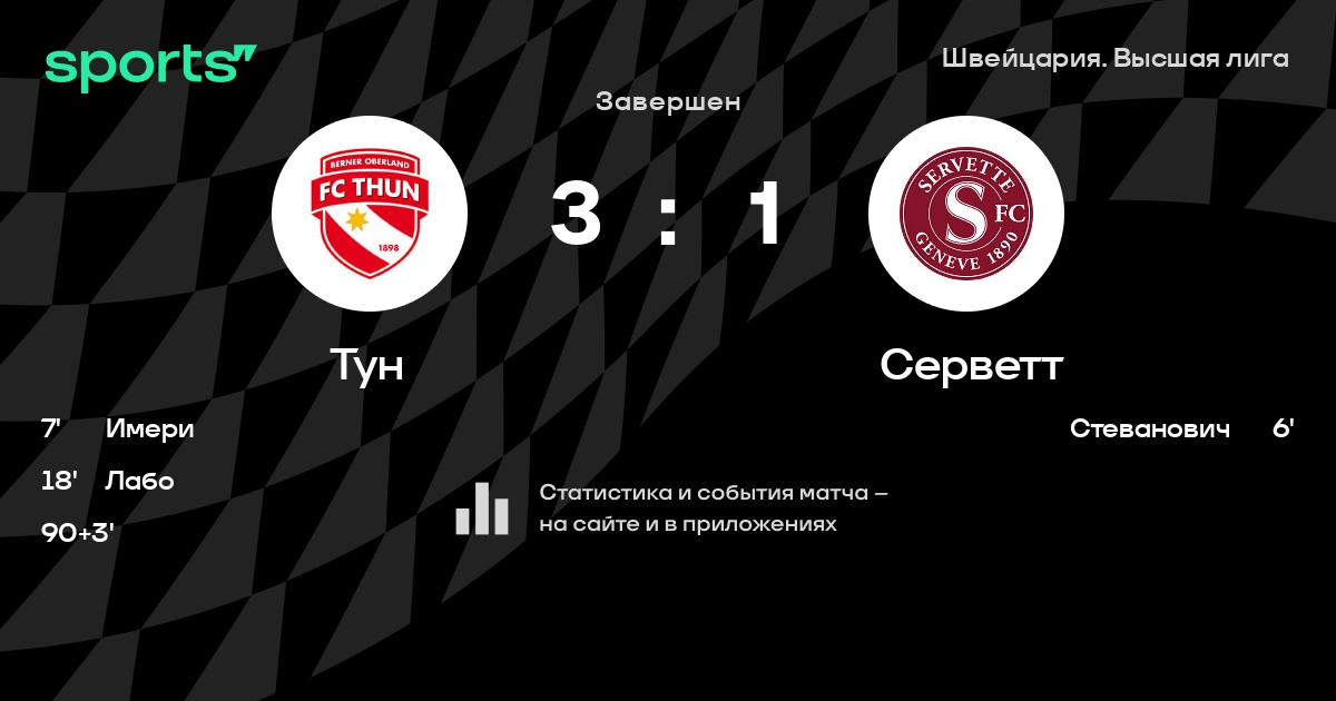 Результат прошлой игры в турнире «Суперлига»: Санкт-Галлен – Тун 1:2. После 8 туров Тун набирает 16 очков и занимает 1 место в турнире. Лучший бомбардир команды – Кристофер Ибейи: он забил 6 в 9 матчах. Тун имеет в активе больше всех побед в турнире – 5. В 8 последних матчах в турнире «Суперлига» Тун обязательно забивает. Тун пропускает в 4 последних матчах в турнире «Суперлига». Тун больше всех забивает в турнире – 16 в 8. В последних 5 играх Тун забивает 8 голов. В последних 5 играх Тун пропускает 9 голов.