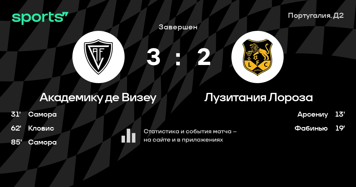 Результат прошлой игры в турнире «Сегунда»: Лейшоэш – Академику де Визеу 1:5. После 9 туров Академику де Визеу набирает 12 очков и занимает 8 место в турнире. Лучший бомбардир команды – Андре Кловис: он забил 10 в 10 матчах. Академику де Визеу не проигрывает в 3 последних матчах в рамках турнира «Сегунда». В 7 последних матчах в турнире «Сегунда» Академику де Визеу обязательно забивает. В последних 5 играх Академику де Визеу забивает 12 голов. В последних 5 играх Академику де Визеу пропускает 7 голов.