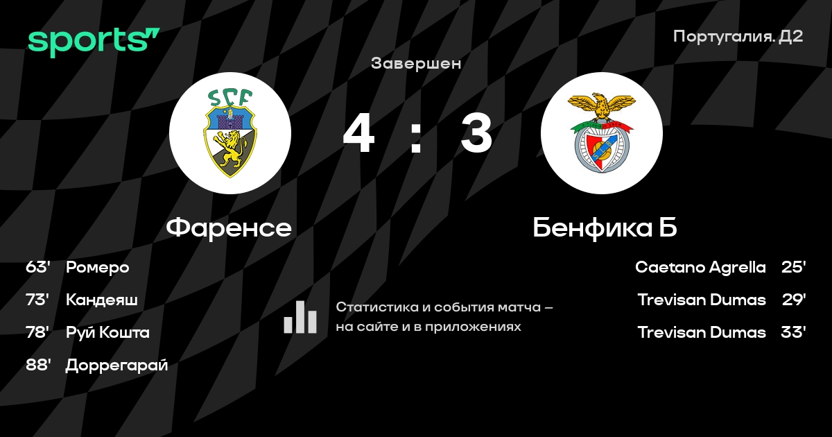 Феррейра - Оливейра, Фонсека, Паренте, Сантуш - Морейра, Martim Maria Ferreira, Приоште, Морейра - Лима, Jelani Trevisan DumasЗапасные: Dias Ribeiro, Anjos Pinto, Ndembi, Coletta, Фрейташ, Edokpolor, Регу, Nunes Fernandes, Veloso das Neves Tomé