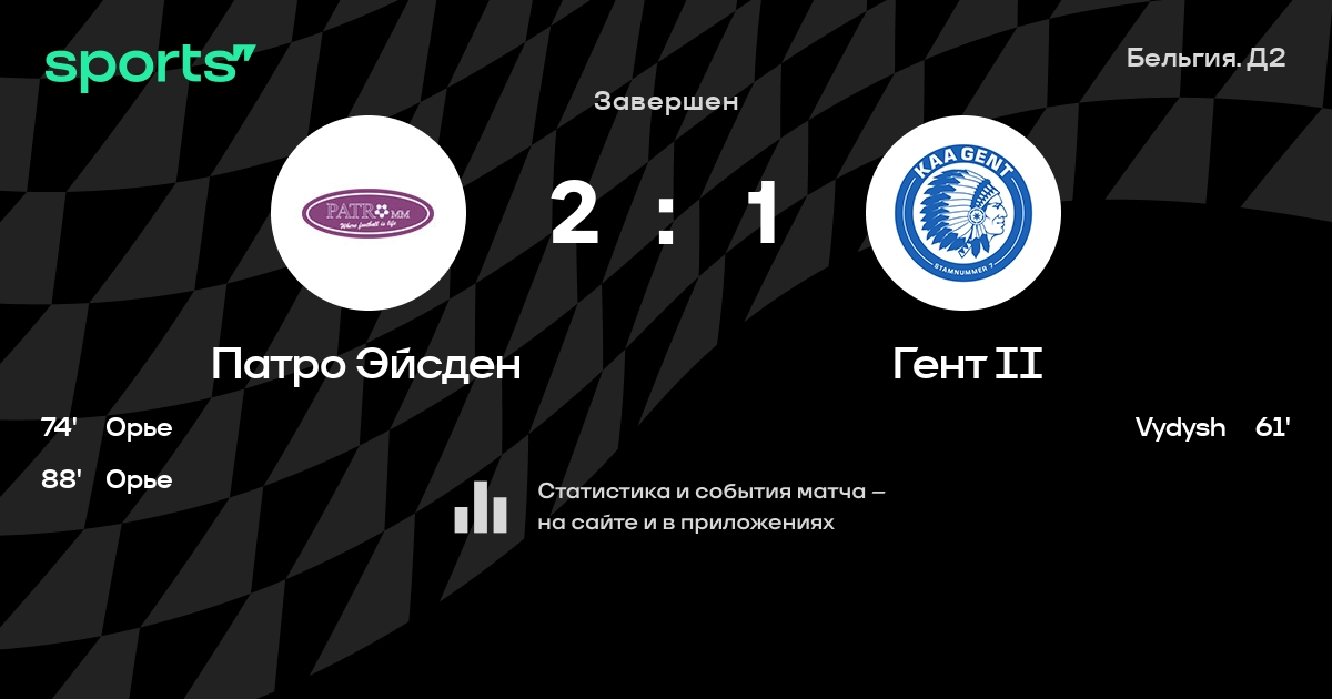 Результат прошлой игры в турнире «Первый дивизион»: Патро Эйсден – Даринг 1:0. После 13 туров Патро Эйсден набирает 21 очков и занимает 6 место в турнире. Лучший бомбардир команды – L. Rousseau: он забил 8 в 14 матчах. В последних 5 играх Патро Эйсден забивает 2 голов. В последних 5 играх Патро Эйсден пропускает 9 голов.