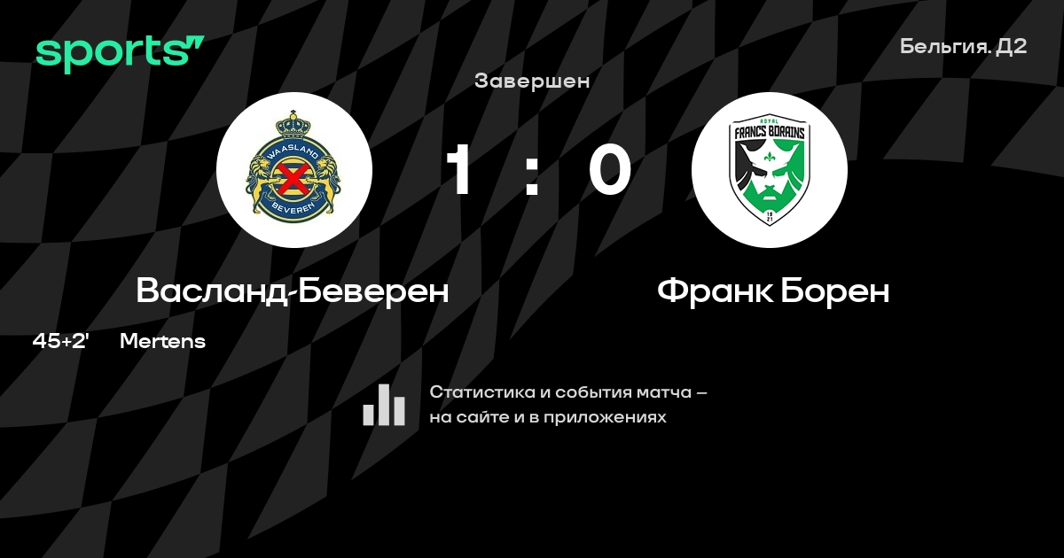 Васланд-Беверен – Франк Борен: Васланд-Беверен не проигрывает в 7 из 9 последних матчей против этого соперника