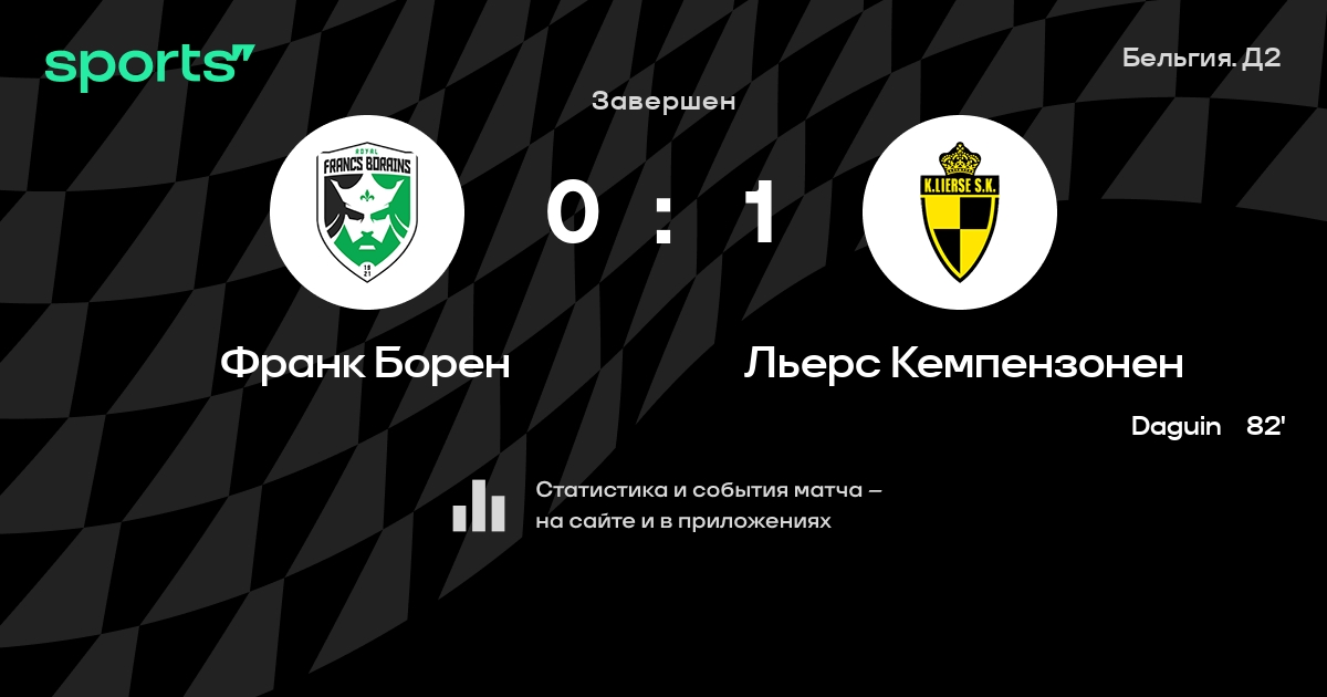 Результат прошлой игры в турнире «Первый дивизион»: Васланд-Беверен – Франк Борен 1:0. После 15 туров Франк Борен набирает 16 очков и занимает 12 место в турнире. Лучший бомбардир команды – L. Lima: он забил 4 в 14 матчах. В последних 5 играх Франк Борен забивает 7 голов. В последних 5 играх Франк Борен пропускает 5 голов.