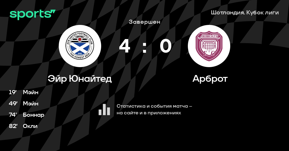 Эйр Юнайтед – Арброт: Эйр Юнайтед не пропускает в 3 последних матчах против этого соперника