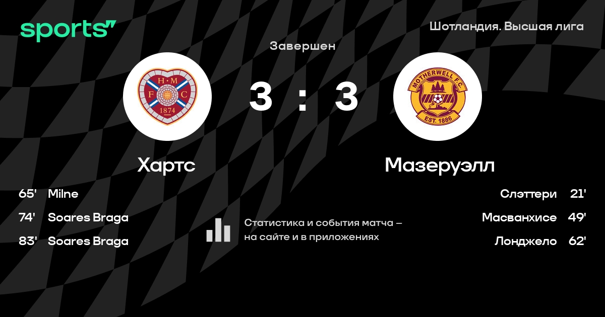 Хартс – Мазеруэлл: Хартс не проигрывает в 5 из 7 последних матчей против этого соперника