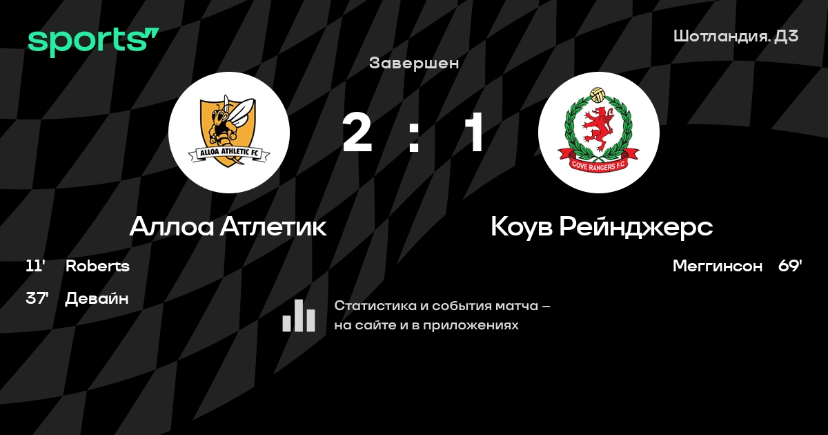 Аллоа Атлетик – Коув Рейнджерс: коэффициенты